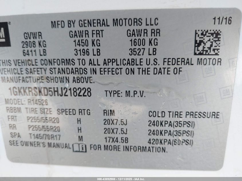 2017 GMC ACADIA - 1GKKRSKD5HJ218228, колір - Білий, 3.6, Бензин, Передній привід із США