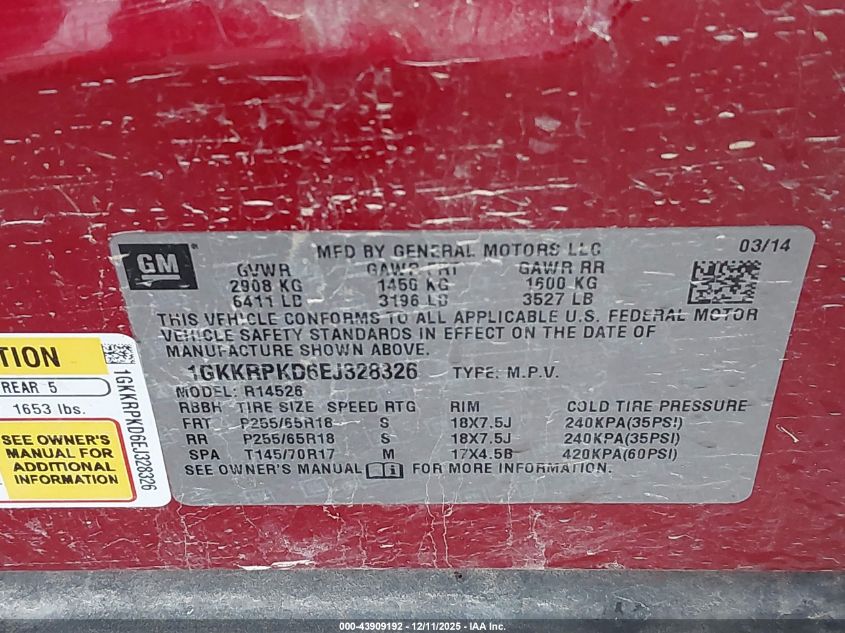 Колір ЧервонийЦиліндри 6Привід Передній привідVIN 1GKKRPKD6EJ328326Стан Заводиться та їде (перевірено)Ушкодження Передня або задня