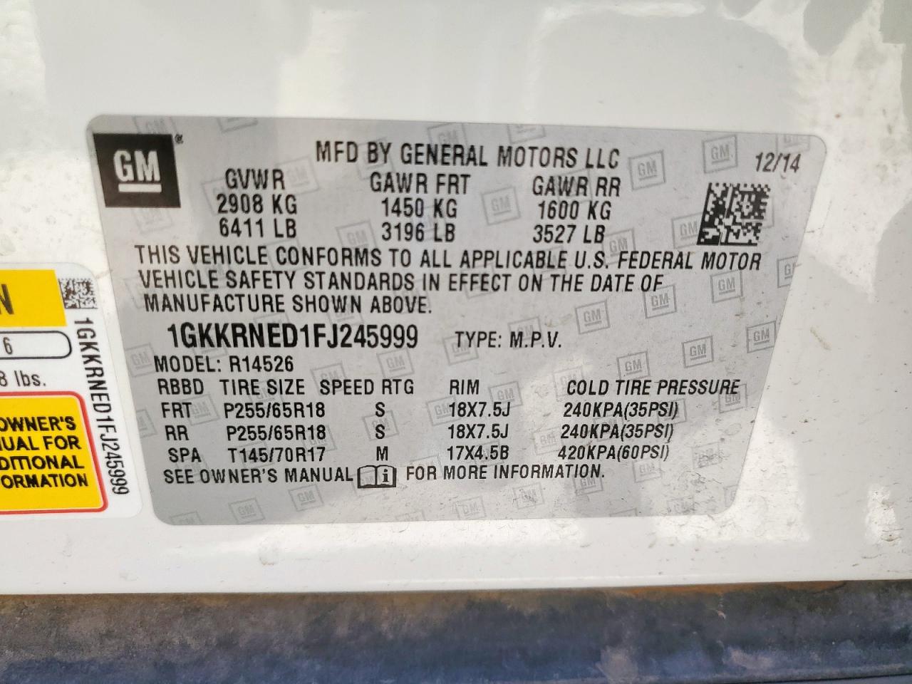 2015 GMC ACADIA - 1GKKRNED1FJ245999, колір - Білий, 3.6, Бензин, із США