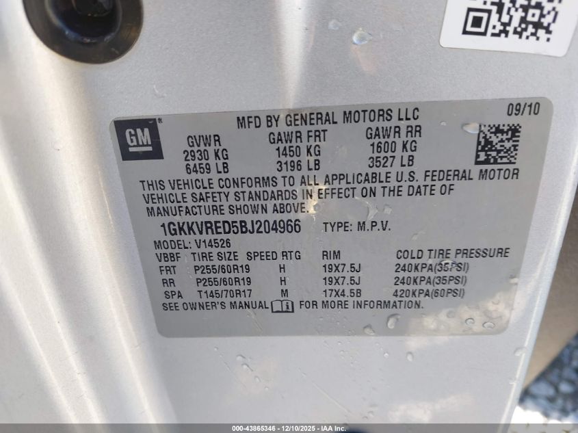 2011 GMC ACADIA - 1GKKVRED5BJ204966, колір - Срібний, 3.6, Бензин, Повний привід із США