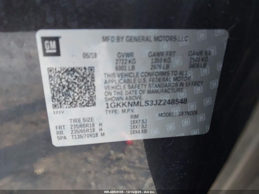 Колір СірийЦиліндри 6Привід Передній привідVIN 1GKKNMLS3JZ248548Стан Заводиться та їде (перевірено)Ушкодження Передня або задня