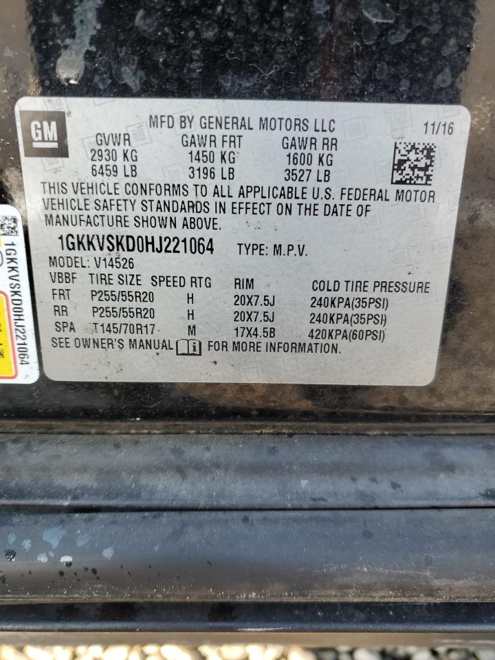 Колір ЧорнийЦиліндри 6Привід Повний привідVIN 1GKKVSKD0HJ221064Стан Заводиться та їде (перевірено)Ушкодження Передня або задня