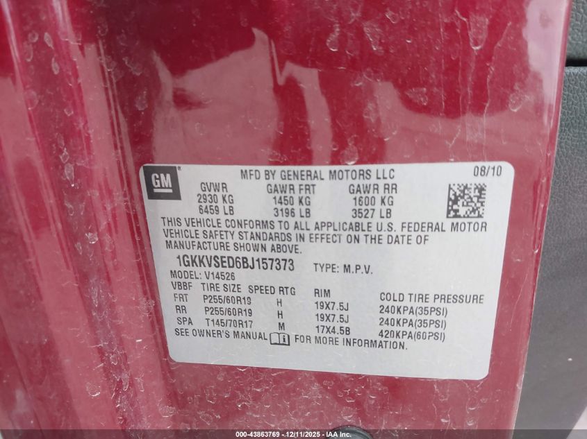 2011 GMC ACADIA - 1GKKVSED6BJ157373, колір - Червоний, 3.6, Бензин, Повний привід із США
