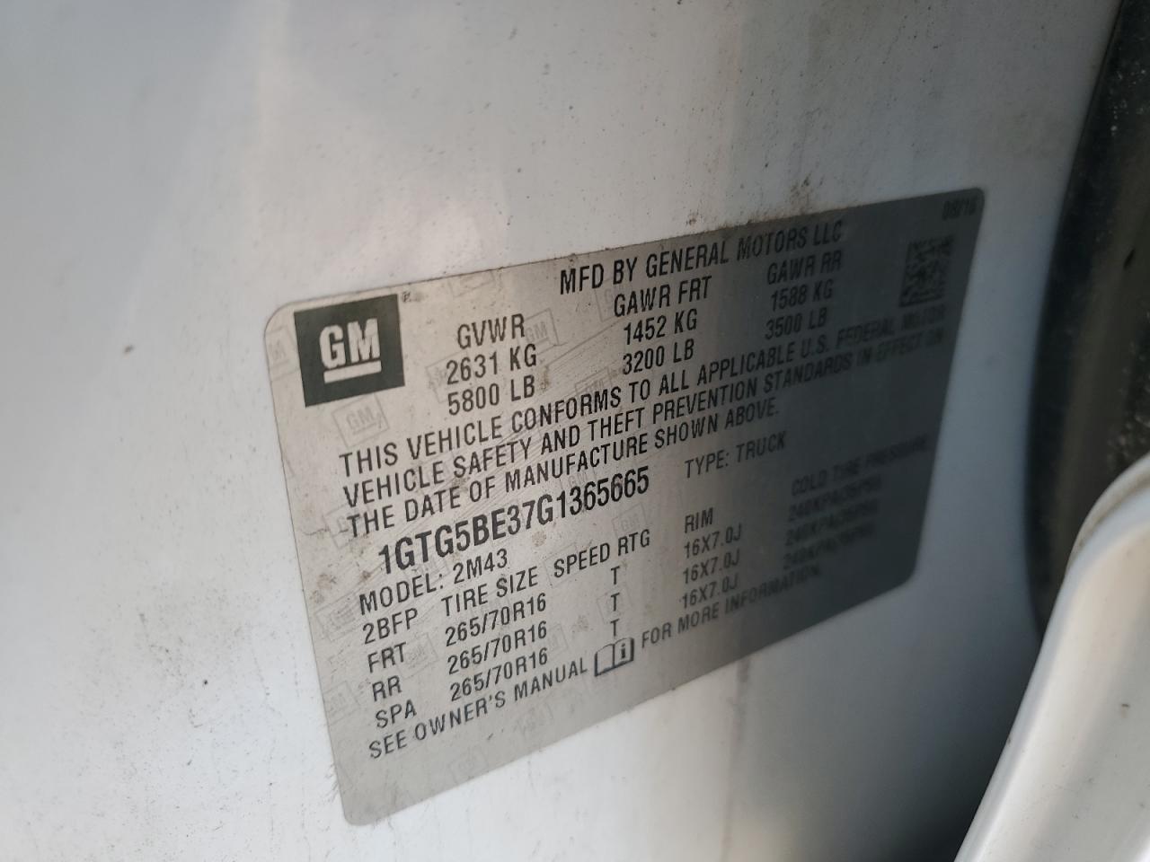 Колір БілийЦиліндри 6Привід Задній привідVIN 1GTG5BE37G1365665Стан Заводиться та їде (перевірено)Ушкодження Передня або задняДата аукціона 2025-10-09