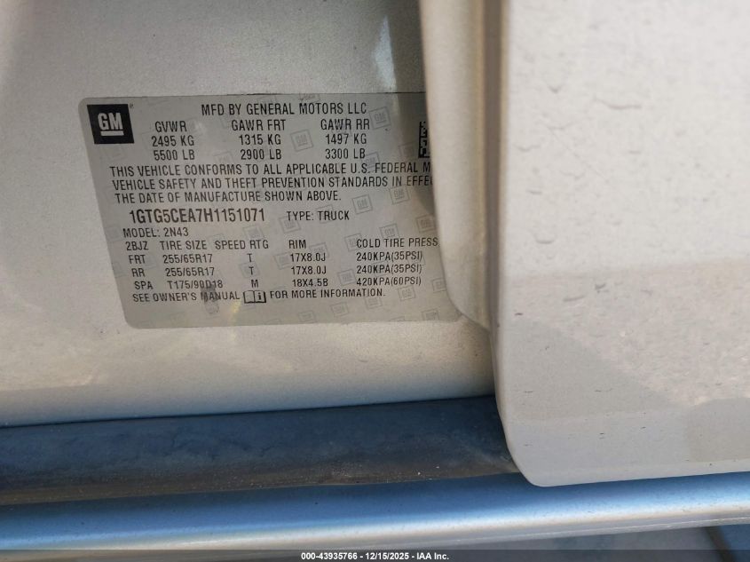 Колір СрібнийЦиліндри 4VIN 1GTG5CEA7H1151071Стан Заводиться та їде (перевірено)Ушкодження Передня або задня