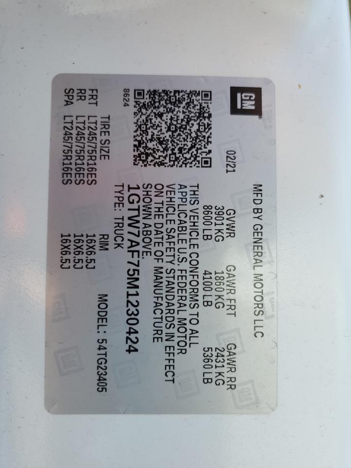 2021 GMC SAVANA - 1GTW7AF75M1230424, колір - Білий, 6.6, Бензин, Задній привід із США