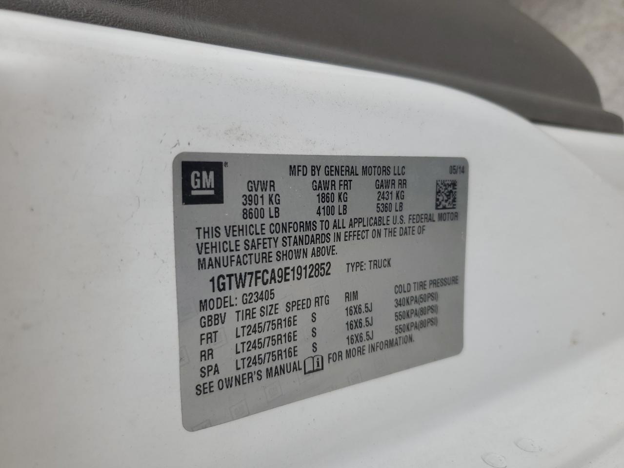 2014 GMC SAVANA - 1GTW7FCA9E1912852, колір - Білий, 4.8, Бензин, Задній привід із США