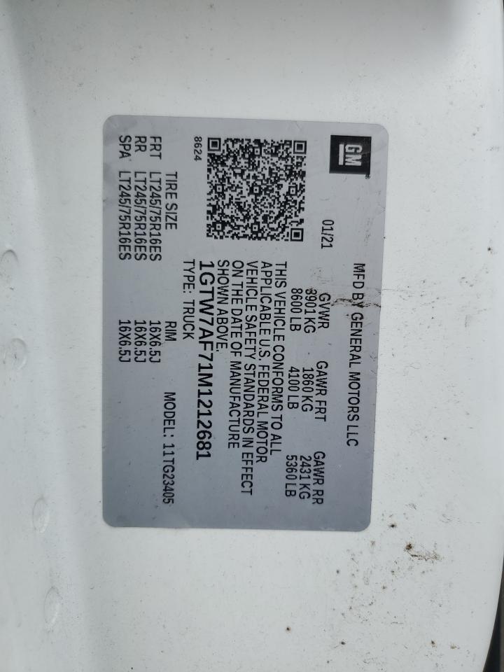 Колір БілийЦиліндри 8Привід Задній привідVIN 1GTW7AF71M1212681Стан НевідомоУшкодження Передня або задняДата аукціона 2025-10-08