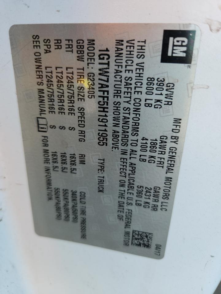 Колір БілийЦиліндри 8Привід Задній привідVIN 1GTW7AFF5H1911955Стан Заводиться та їде (перевірено)Ушкодження НезначніДата аукціона 2025-10-13