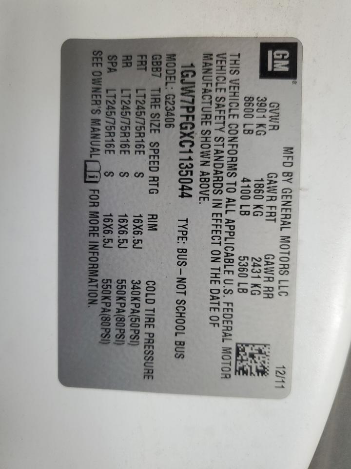 2012 GMC SAVANA - 1GJW7PFGXC1135044, колір - Білий, 6.0, Бензин, Задній привід із США