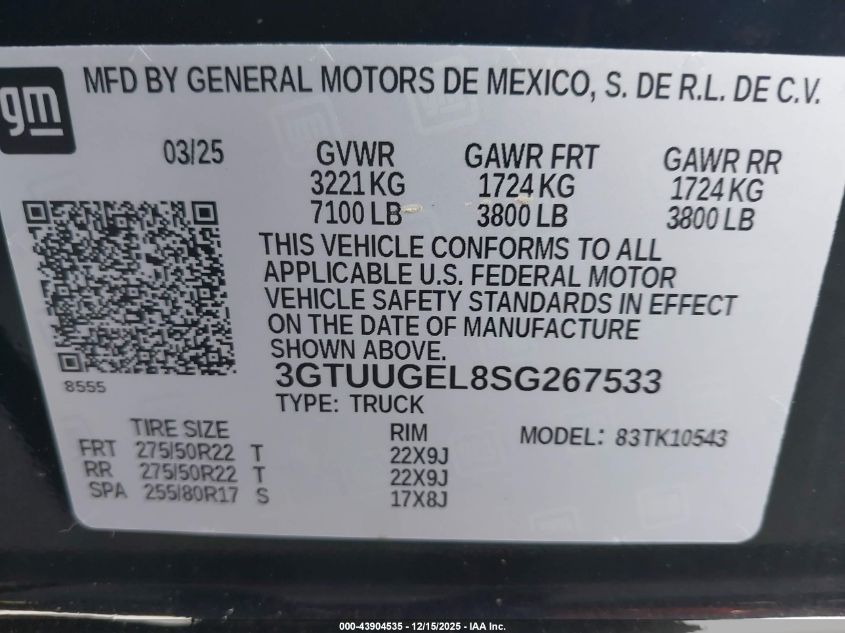 Колір ЧервонийЦиліндри 8Привід Повний привідVIN 3GTUUGEL8SG267533Стан СтаціонарноУшкодження По всьому авто