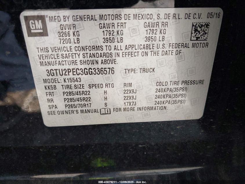 2016 GMC SIERRA 1500 - 3GTU2PEC3GG336576, колір - Чорний, 5.3, Бензин, Повний привід із США