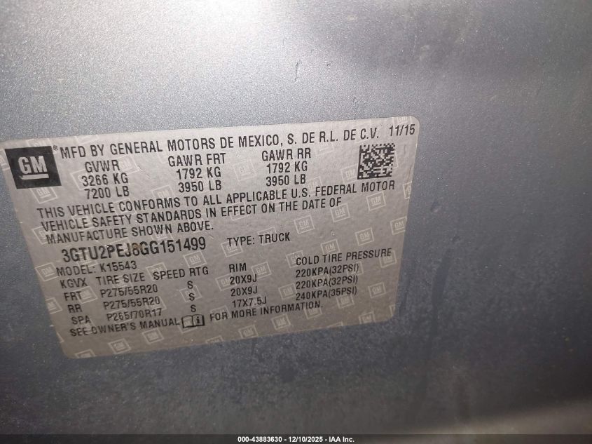 Колір СинійЦиліндри 8Привід Повний привідVIN 3GTU2PEJ8GG151499Стан Заводиться та їде (перевірено)Ушкодження Передня або задня