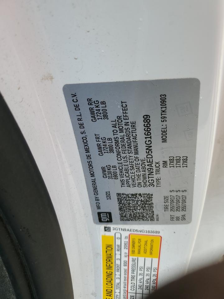 2022 GMC SIERRA 1500 - 3GTN9AED5NG166689, колір - Білий, 5.3, Бензин, 4x4 з заднім приводом із США