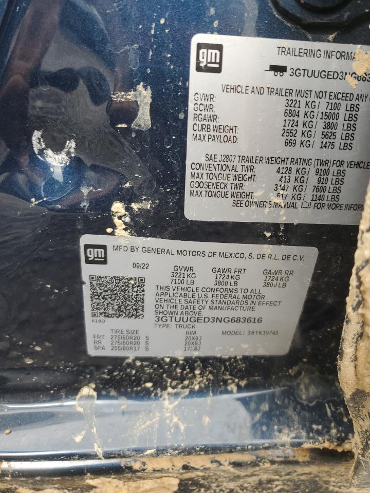 2022 GMC SIERRA 1500 - 3GTUUGED3NG683616, колір - Синій, 5.3, Бензин, 4x4 з заднім приводом із США