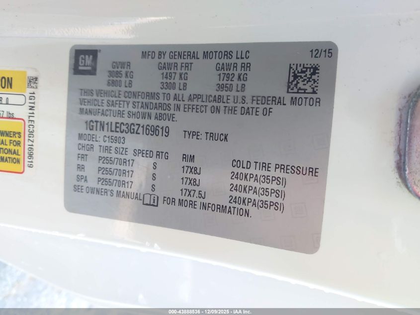2016 GMC SIERRA 1500 - 1GTN1LEC3GZ169619, колір - Білий, 5.3, Бензин, із США