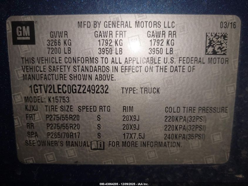 Колір СинійЦиліндри 8Привід Повний привідVIN 1GTV2LEC0GZ249232Стан Заводиться та їде (перевірено)Ушкодження Передня або задня