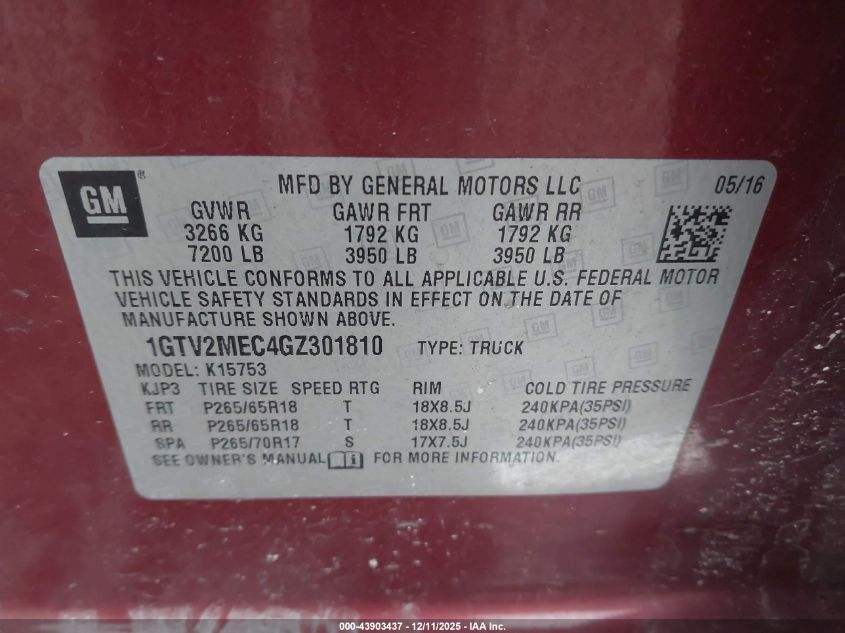 2016 GMC SIERRA 1500 - 1GTV2MEC4GZ301810, колір - Бордовий, 5.3, Бензин, Повний привід із США