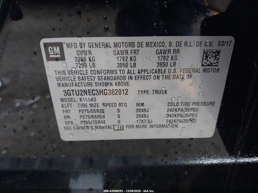 2017 GMC SIERRA 1500 - 3GTU2NEC3HG382012, колір - Чорний, 5.3, Бензин, Повний привід із США