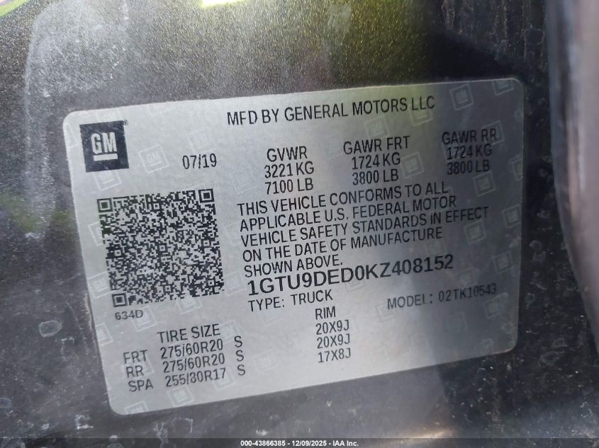 Колір СірийЦиліндри 8Привід Повний привідVIN 1GTU9DED0KZ408152Стан Заводиться та їде (перевірено)Ушкодження Передня ліва