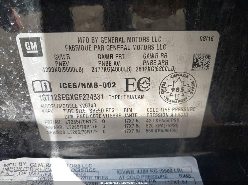 Колір ЧорнийЦиліндри 8Привід Повний привідVIN 1GT12SEGXGF274331Стан Заводиться та їде (перевірено)Ушкодження Передня або задняДата аукціона 2025-10-10