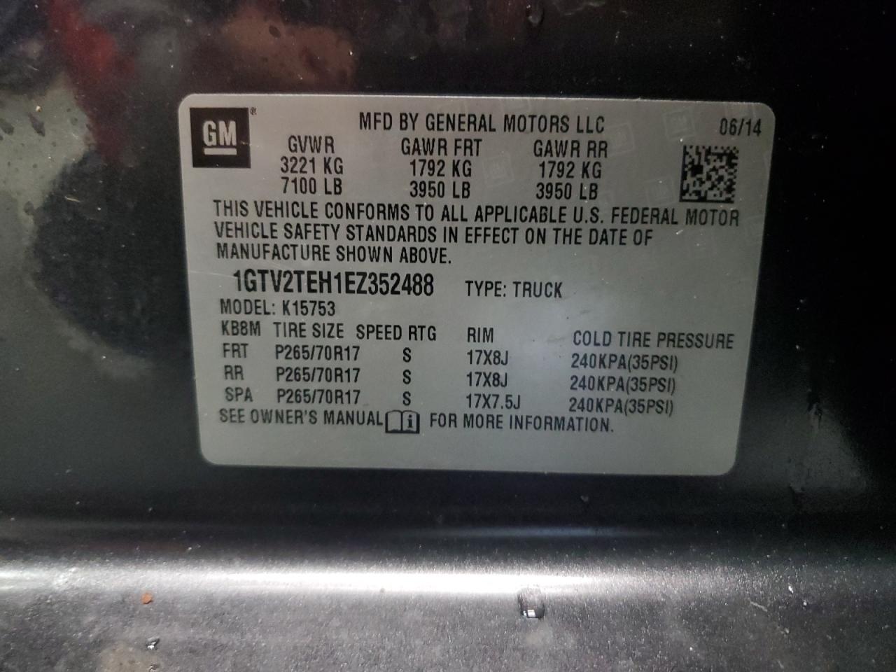 Колір СірийЦиліндри 6Привід 4x4 з заднім приводомVIN 1GTV2TEH1EZ352488Стан Заводиться та їде (перевірено)Ушкодження НезначніДата аукціона 2025-10-09