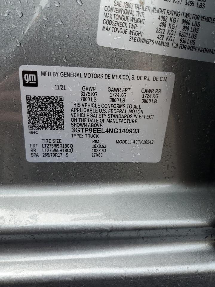2022 GMC SIERRA 1500 - 3GTP9EEL4NG140933, колір - Сірий, 6.2, Бензин, 4x4 з заднім приводом із США