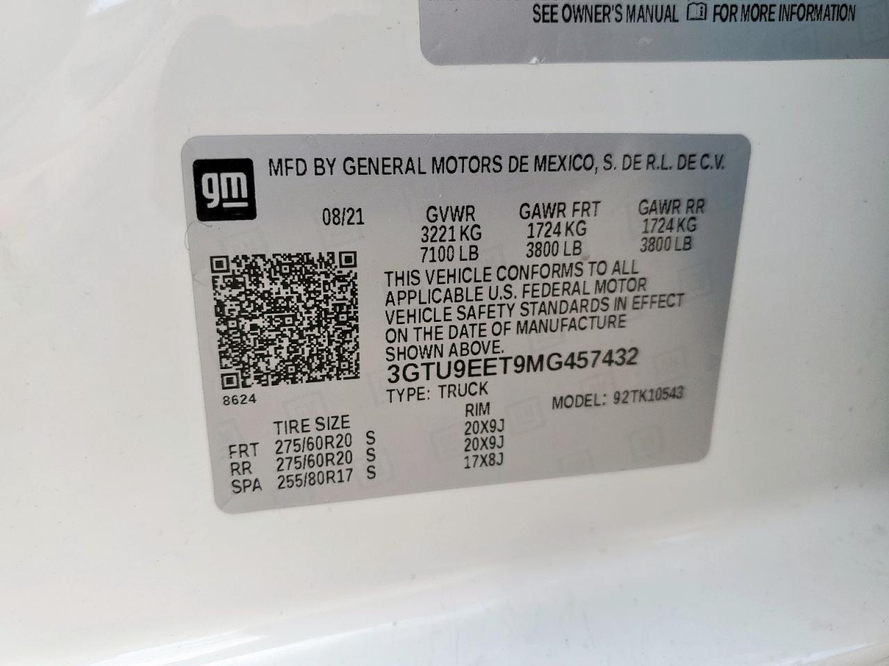 Колір БілийЦиліндри 6Привід 4x4 з заднім приводомVIN 3GTU9EET9MG457432Стан НевідомоУшкодження Передня або задняДата аукціона 2025-10-07