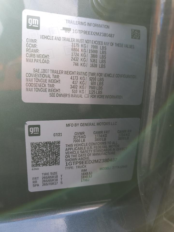2021 GMC SIERRA - 1GTP9EED2MZ380487, колір - Сірий, 5.3, Бензин, 4x4 з заднім приводом із США