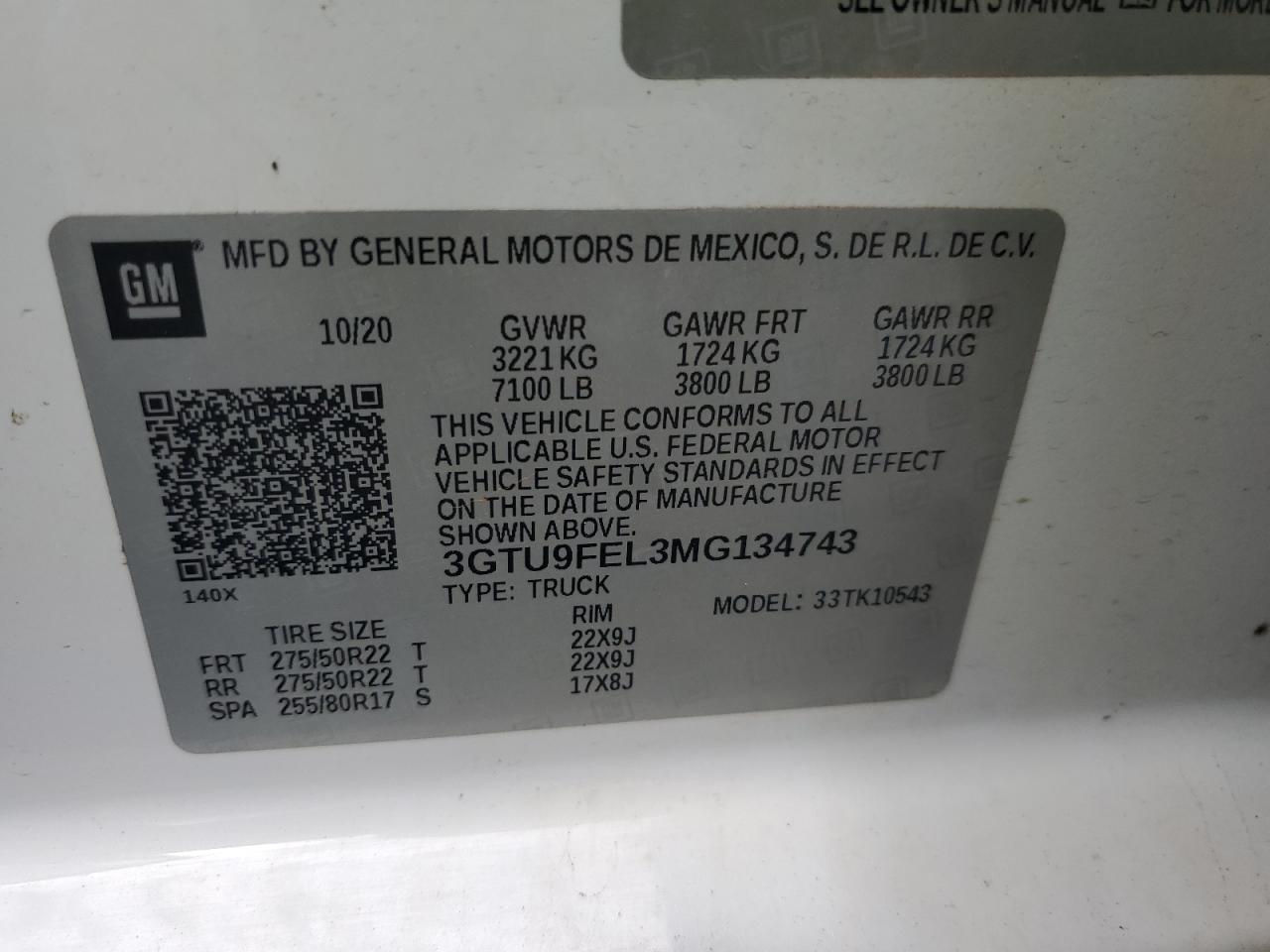 2021 GMC SIERRA - 3GTU9FEL3MG134743, колір - Білий, 6.2, Бензин, 4x4 з заднім приводом із США