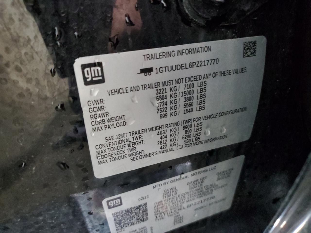 2023 GMC SIERRA - 1GTUUDEL6PZ217770, колір - Чорний, 6.2, Бензин, 4x4 з заднім приводом із США