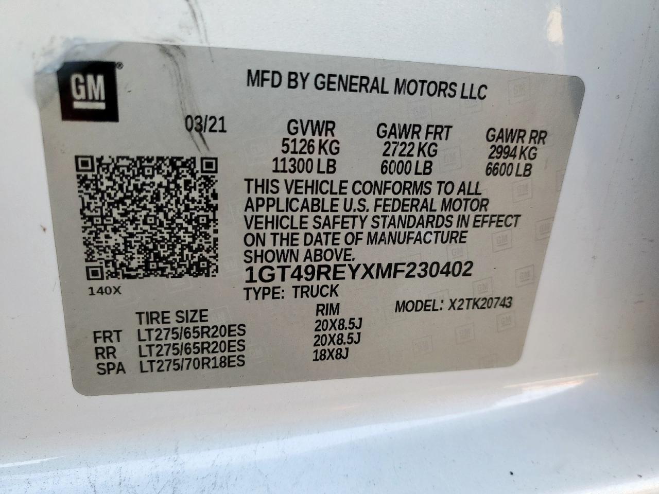 Колір БілийЦиліндри 8Привід 4x4 з заднім приводомVIN 1GT49REYXMF230402Стан НевідомоУшкодження НезначніДата аукціона 2025-10-09