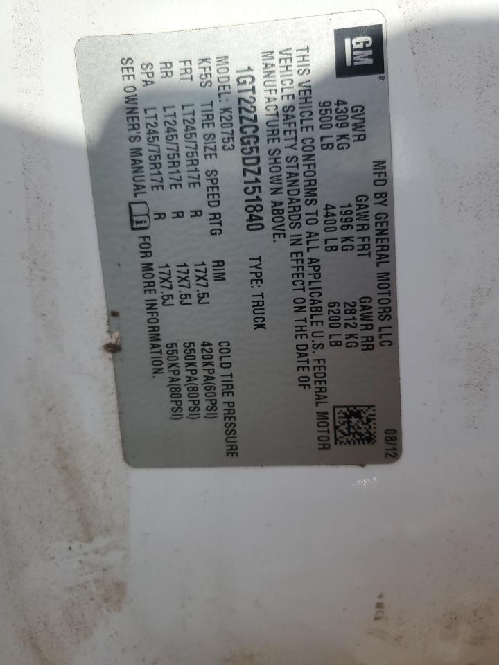 2013 GMC SIERRA - 1GT22ZCG5DZ151840, колір - Білий, 6.0, Бензин, 4x4 з заднім приводом із США