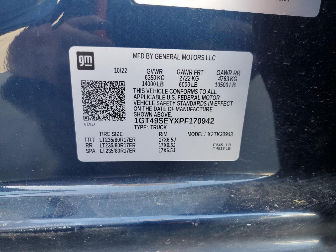 Колір СинійЦиліндри 8Привід 4x4 з заднім приводомVIN 1GT49SEYXPF170942Стан Заводиться та їде (перевірено)Ушкодження Передня або задняДата аукціона 2025-10-09