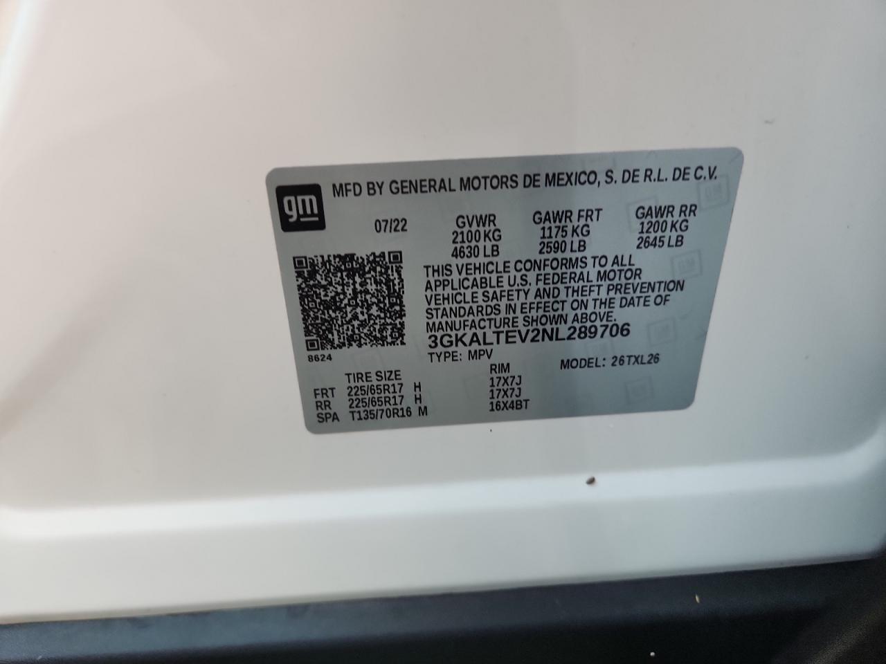Колір БілийЦиліндри 4Привід Повний привідVIN 3GKALTEV2NL289706Стан НевідомоУшкодження ВодаДата аукціона 2025-10-08