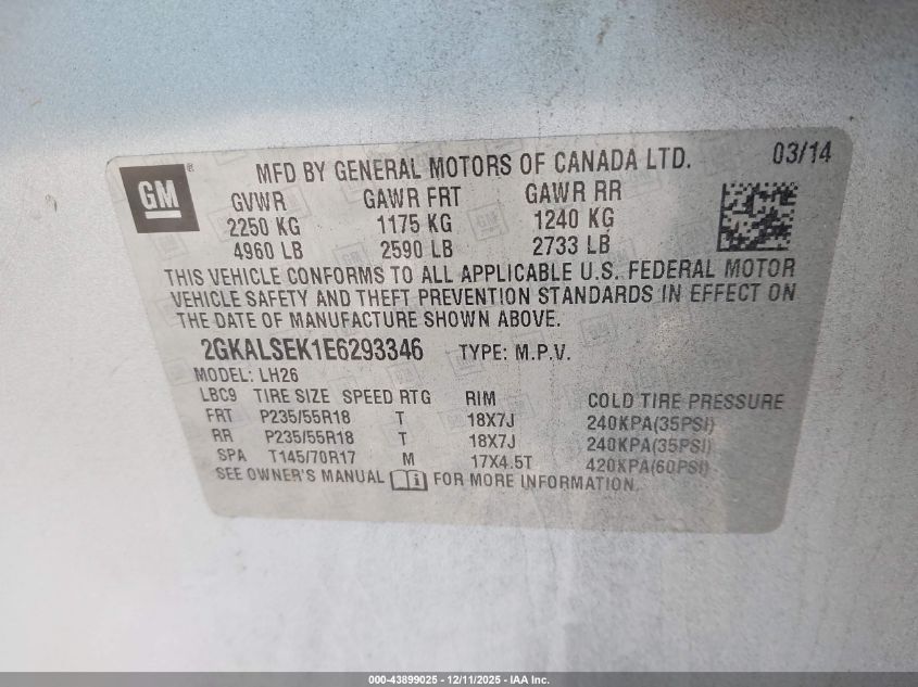 2014 GMC TERRAIN - 2GKALSEK1E6293346, колір - Срібний, 2.4, Бензин, Передній привід із США