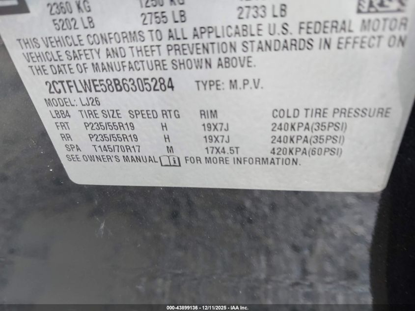 Колір ЧорнийЦиліндри 6Привід Передній привідVIN 2CTFLWE58B6305284Стан СтаціонарноУшкодження Передня або задня