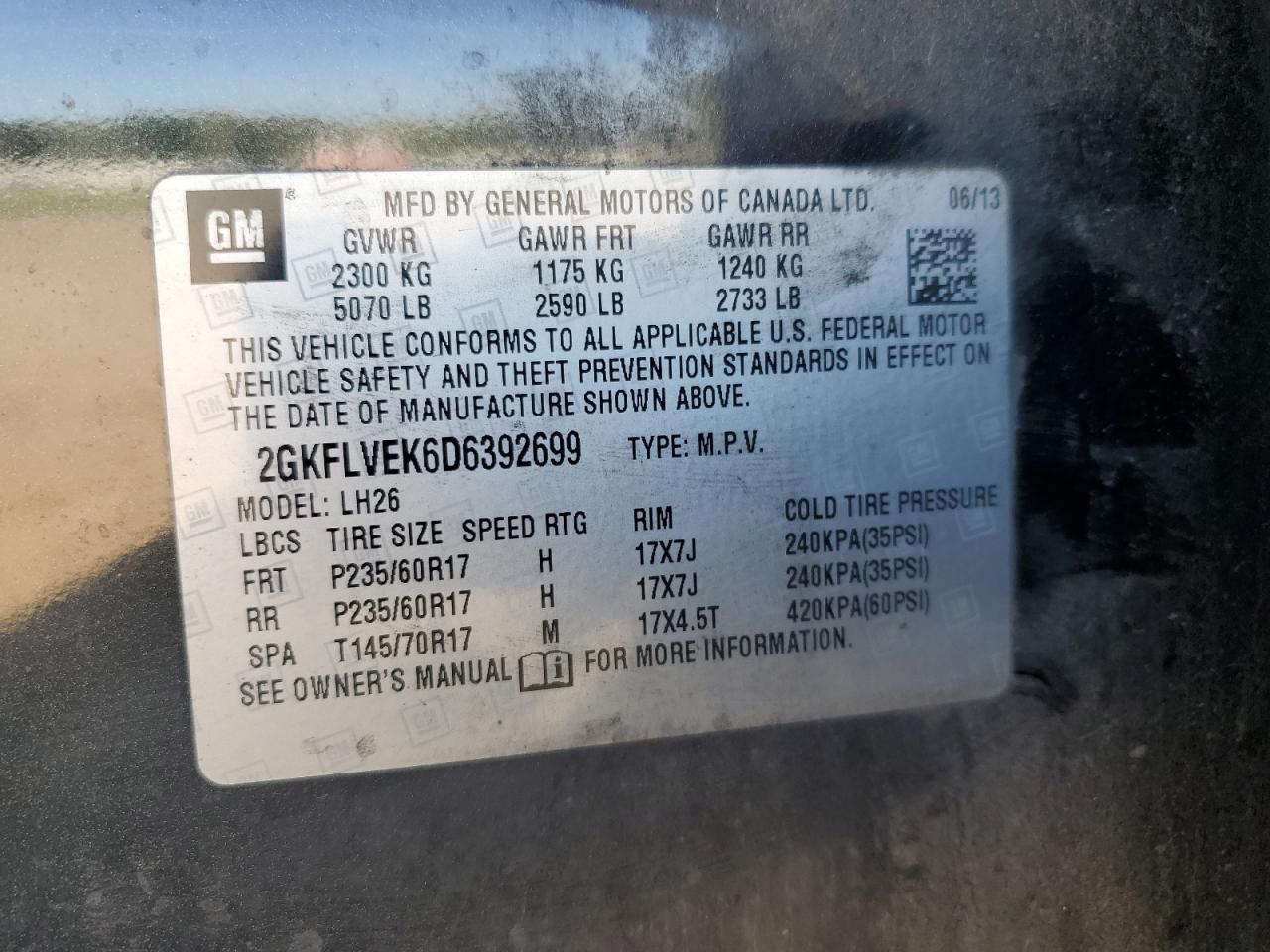 Колір ЧорнийЦиліндри 4Привід Повний привідVIN 2GKFLVEK6D6392699Стан Заводиться та їде (перевірено)Ушкодження НезначніДата аукціона 2025-10-09