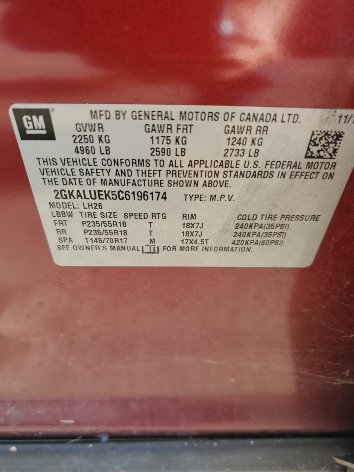 2012 GMC TERRAIN - 2GKALUEK5C6196174, колір - Червоний, 2.4, Бензин, із США