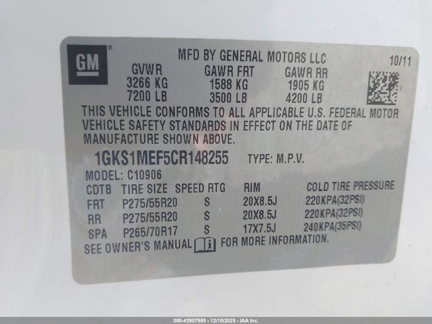 2012 GMC YUKON - 1GKS1MEF5CR148255, колір - Білий, 6.2, Бензин, із США