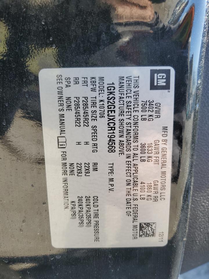 2012 GMC YUKON - 1GKS2GEJXCR194568, колір - Чорний, 6.0, Гібрид, 4x4 з заднім приводом із США