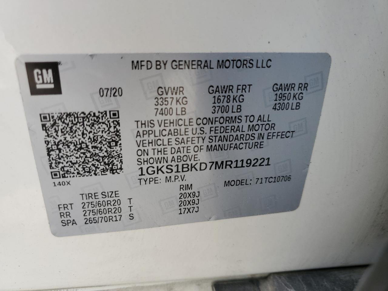2021 GMC YUKON - 1GKS1BKD7MR119221, колір - Білий, 5.3, Бензин, Задній привід із США
