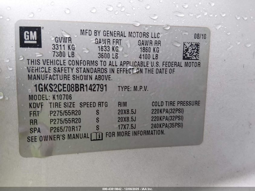 Колір СрібнийЦиліндри 8Привід Повний привідVIN 1GKS2CE08BR142791Стан Заводиться та їде (перевірено)Ушкодження Передня права