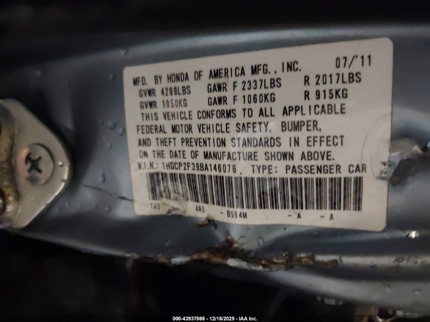 2011 HONDA ACCORD - 1HGCP2F39BA146076, колір - , 2.4, Бензин, Передній привід із США