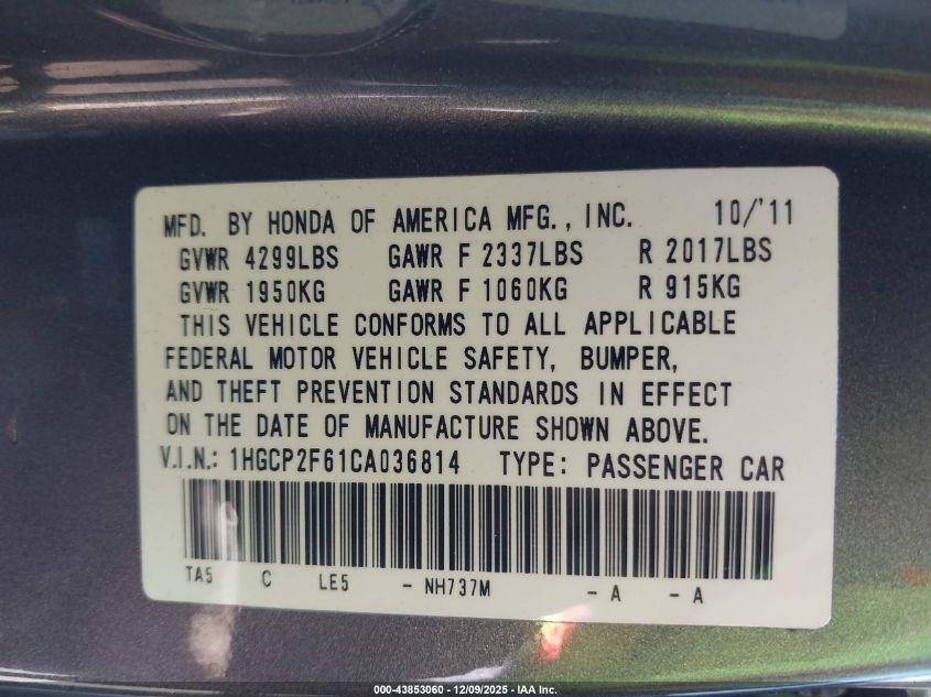 2012 HONDA ACCORD EXL