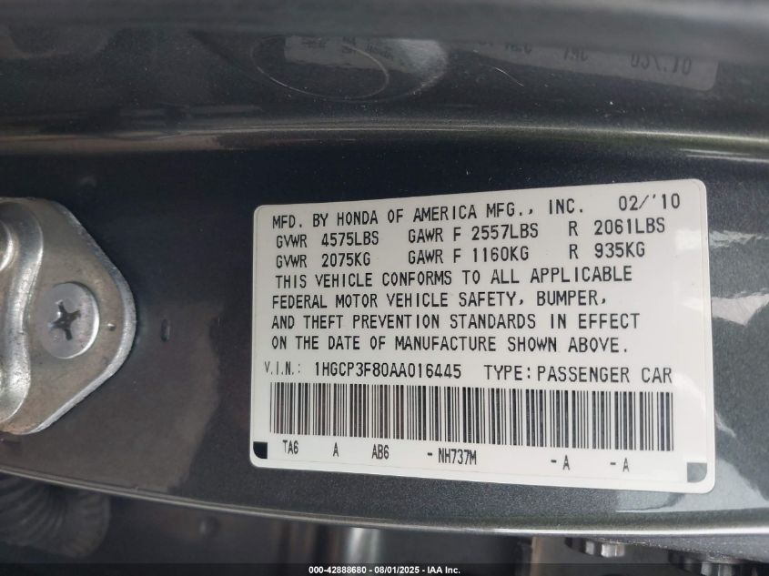 2010 HONDA ACCORD - 1HGCP3F80AA016445, колір - Сірий, 3.5, Бензин, Передній привід із США