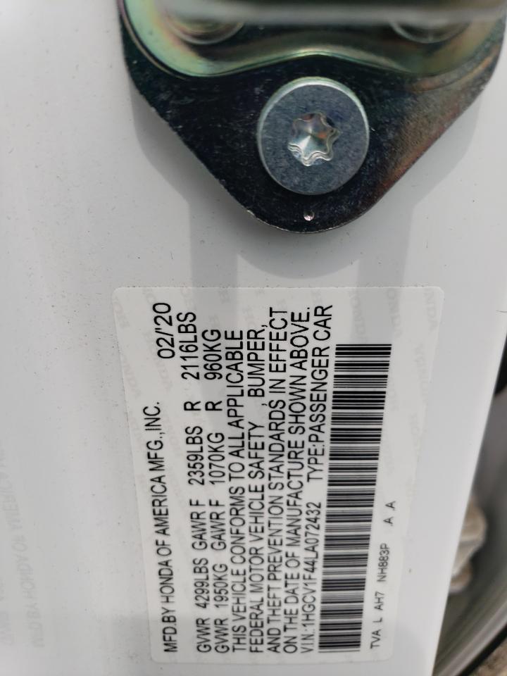 2020 HONDA ACCORD - 1HGCV1F44LA072432, колір - Білий, 1.5, Бензин, із США