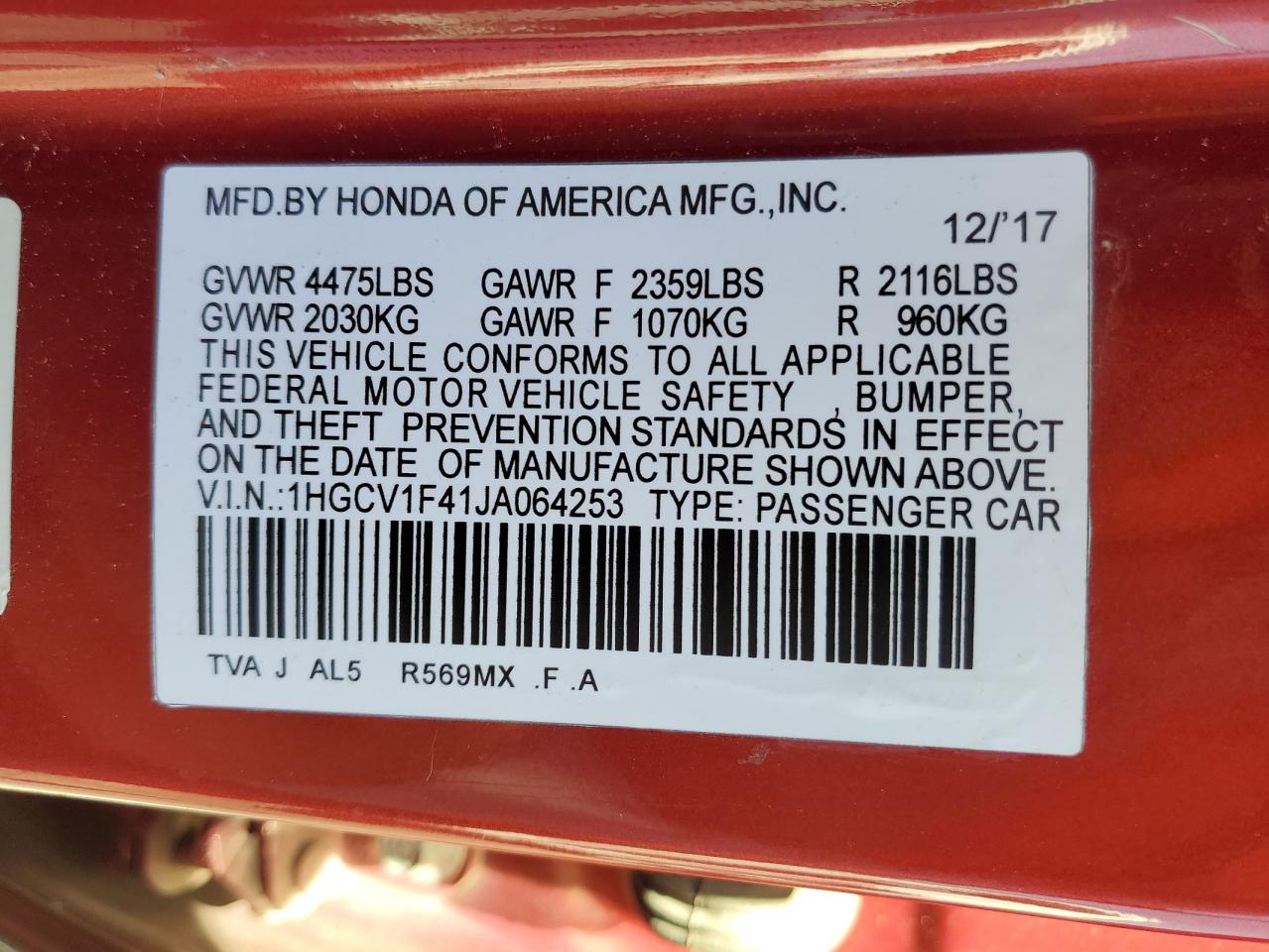 2018 HONDA ACCORD - 1HGCV1F41JA064253, колір - Червоний, 1.5, Бензин, із США