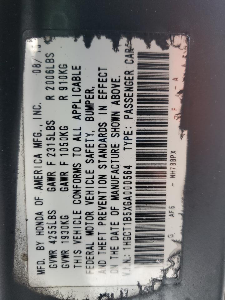 Колір ЧорнийЦиліндри 4VIN 1HGCT1B5XGA000564Стан Заводиться та їде (перевірено)Ушкодження НезначніДата аукціона 2025-10-09