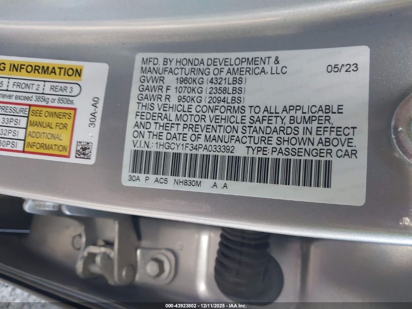 Колір СрібнийЦиліндри 4Привід Передній привідVIN 1HGCY1F34PA033392Стан Заводиться та їде (перевірено)Ушкодження Ліва сторона